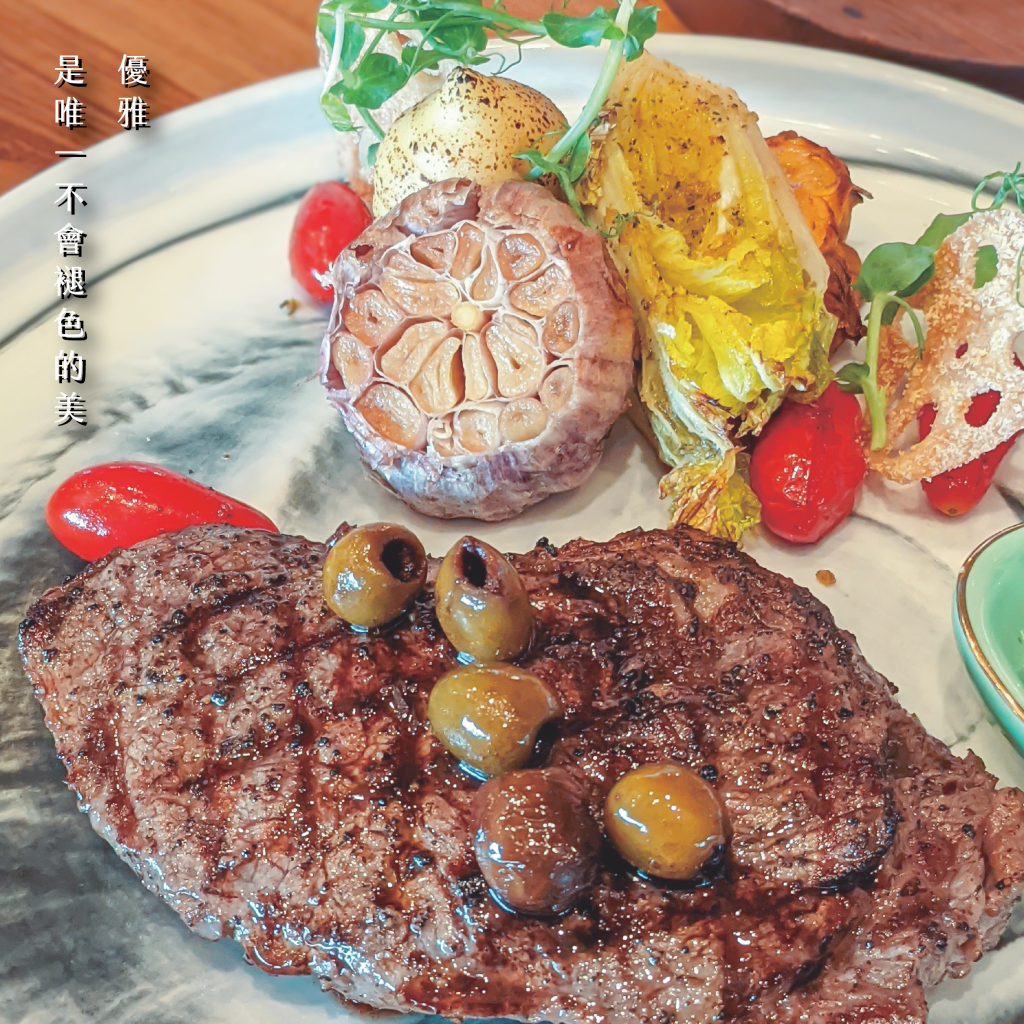 取牛前腰脊肉(Strip Loin)的部份,大理石油花(Marbling)均勻,肉質與沙朗牛排接近,富有嚼勁。